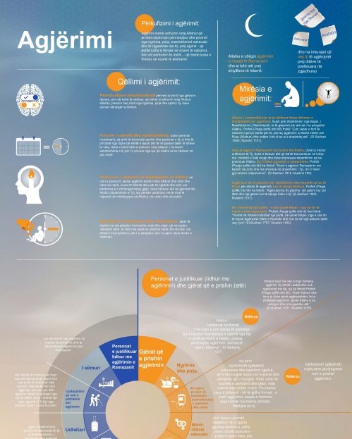 Agjërimi Kjo infografikë bën fjalë për ritin e agjërimit, për kuptimin e tij, qëllimin e tij, mirësitë e tij, tregon se cilat janë gjërat që e prishin atë dhe kush janë personat e justifikuar të cilëve u lejohet të mos agjërojnë.