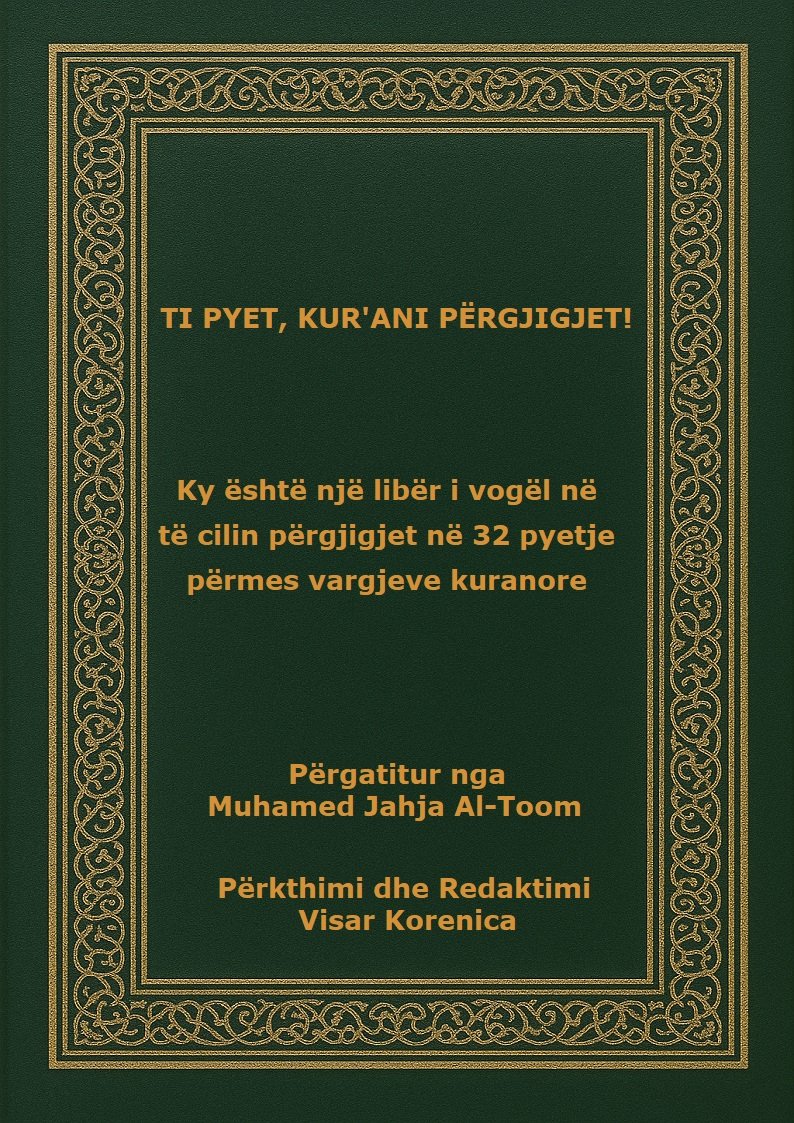 Ky është një libër i vogël në të cilin përgjigjet 32 pyetjeve përmes vargjeve kuranore. Ai përgjigjet pyetjeve rreth Allahut, krijuesit të vërtetë, kombeve të mëparshme, kuptimit të adhurimit, shpëtimit të Kuranit nga korrupsioni, Profetit Muhamed dhe Profetit Isa (paqja qoftë mbi ta), Jetës së Përtejme dhe destinacionit si të besimtarëve ashtu edhe të jobesimtarëve. Përgatitur nga: Muhamed Jahja Al-Toom - Përkthimi dhe përgatitja: Visar Korenica