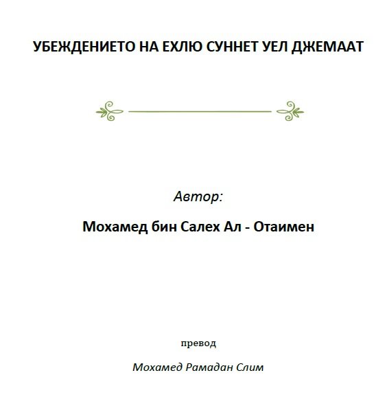 Заради важността на темата, в която ще говорим, и заради многобройните мнения на хората, породени от прищявки и незнание, сметнах за важно да напиша съкратен труд за нашето убеждение, убеждението на Ехлю суннет уел джемаат, а то е: