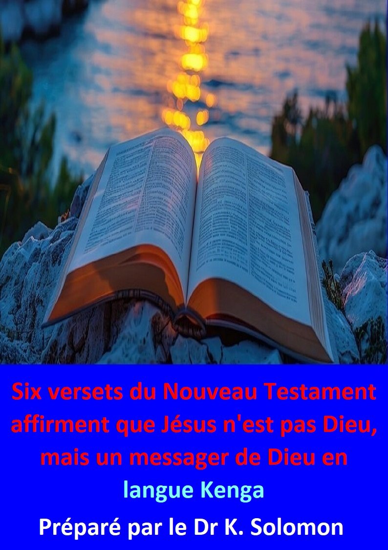 Six versets du Nouveau Testament affirment que Jésus n'est pas Dieu, mais un messager de Dieu en langue Kenga (Taar Cɛŋɛ) - Six verses in the New Testament say Jesus is not God, but a messenger of God in Kenga language (Taar Cɛŋɛ) - Bible en langue kenga - Jan 7:16 'Num gaŋ Isa tɛrlɗen ɔɔ: «Taargen maam dooy jeege se, mꞋtɛrɛc daan dom ki eyo, num taargen se, debm kɛn ɔlumo se ɓo taaɗumsin̰o.' Matiye 26:39 'Naan̰ iin̰ iik naan ki cɔkɔ se, ɓaa ɛrg ɔnd naanin̰ naaŋ ki ɔɔ baag tɔnd mɛtn Raa ɗeek ɔɔ: «Bubuma, kɛn naai Ꞌje num iikum *kɔɔpm dubar se rom ki naata! Naɓo Ꞌtɛɗ aan gɔɔ kɛn naai maaki jea, num aan gɔɔ kɛn maam ɓo mꞋje se eyo.»' Matiye 27:46 'Aan katar do tɛgɛr ki se, Isa ɔɔɗ ɔɔy makɔn̰ ute taar naaŋin̰a ɔɔ: «Ɛli, Ɛli , lɛma sabaktani?» Taar se je ɗeekŋ ɔɔ: Raama Raama, naai Ꞌrɛsum gɛn ɗi?' Mark 10:18 'Isa tɛrlin̰ ɔɔ: «Gɛn ɗi jaay naai ɔɔ maam debm bɛɛ se? Debkilim bɛɛ se tap ɓo gɔtɔ; kɛn bɛɛ se, Raa kalin̰ ki sum.' Mark 12:29 'Isa tɛrlin̰ ɔɔ: «Taar cirɗe paac se kɛn ɔɔ: ꞋBooyki gaan *Israɛlge, Mɛljege Raa se, naan̰ kalin̰ ki sum ɓo Raa.' Mark 13:32 '«Num gaŋ kɛn gɛn kaaɗin̰ ute ɓiin̰ Goon Deba ano ɓaa se, nam tap ɓo jeel eyo. Kɔɗgen maakŋ raa ki kic lɛ jeel eyo, ɔɔ Goono kic ɓo, jeel eyo. Nam jeel ɓiin̰ se, gɔtɔ. Kɛn jeel se, Bubu kalin̰ ki sum.'