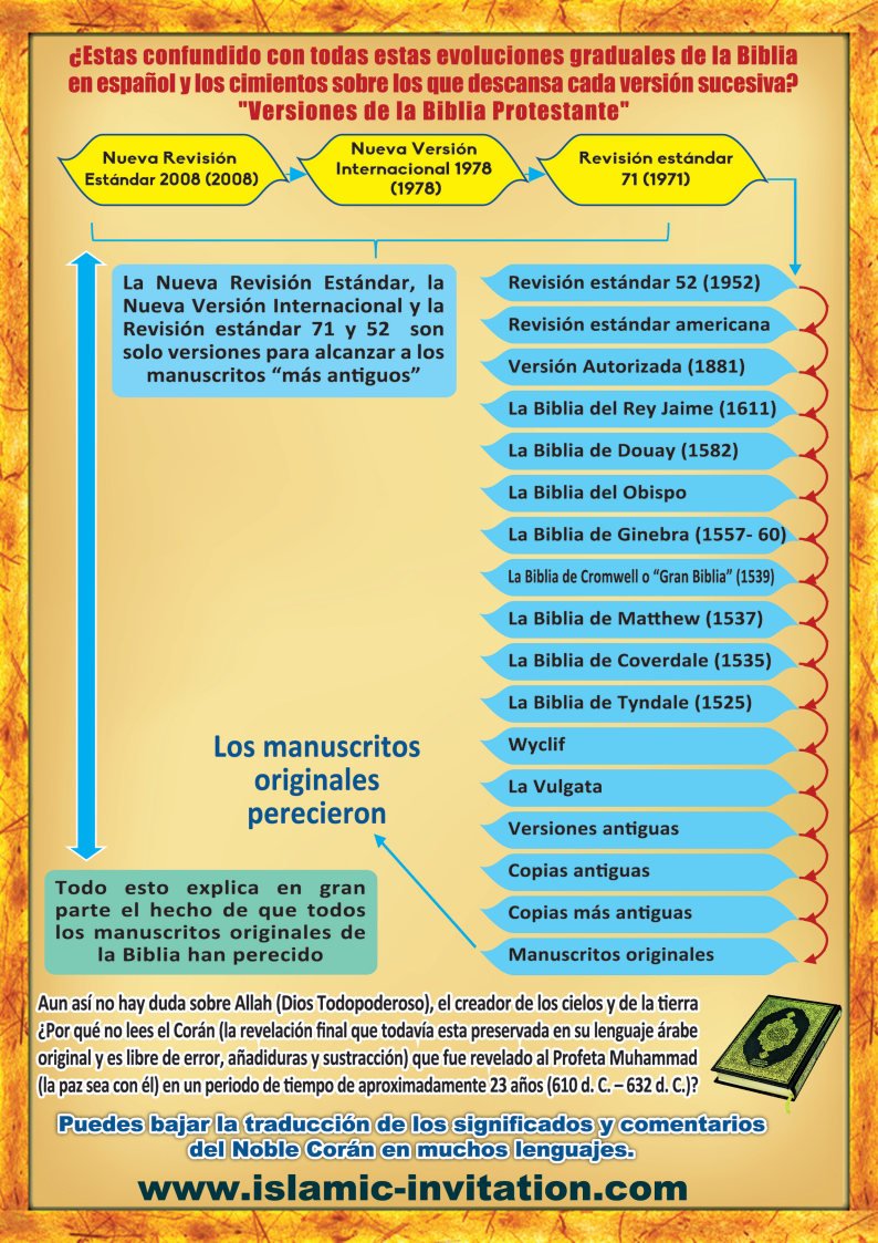 ¿Estas confundido con todas estas evoluciones graduales de la Biblia en español y los cimientos sobre los que descansa cada versión sucesiva? "Versiones de la Biblia Protestante"