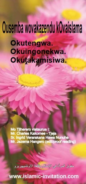 Ovarumendu novakazendu ve rikotamena ku Alla momuhingo umwe, pu mape tja ve rikotamena ku Ndjambi (Allah) umwe, ve ungura ovitjitwa vimwe vyokurikotamena, ve kongorera embo rimwe eyapuke, ve tjinda ongamburiro imwe. Allah (ena rOtjiaraba ndi tja, Ndjambi umwe ngwa mema oviutwa avihe), u pangura ovandu avehe nokuhina ombangu nokutara konḓengu. Allah u kahurura tjinene omatjindiro nge hi nongarera nu u kahurura otjisuta ku avehe ovarumendu novakazendu momazeva omengi wOqur’an: