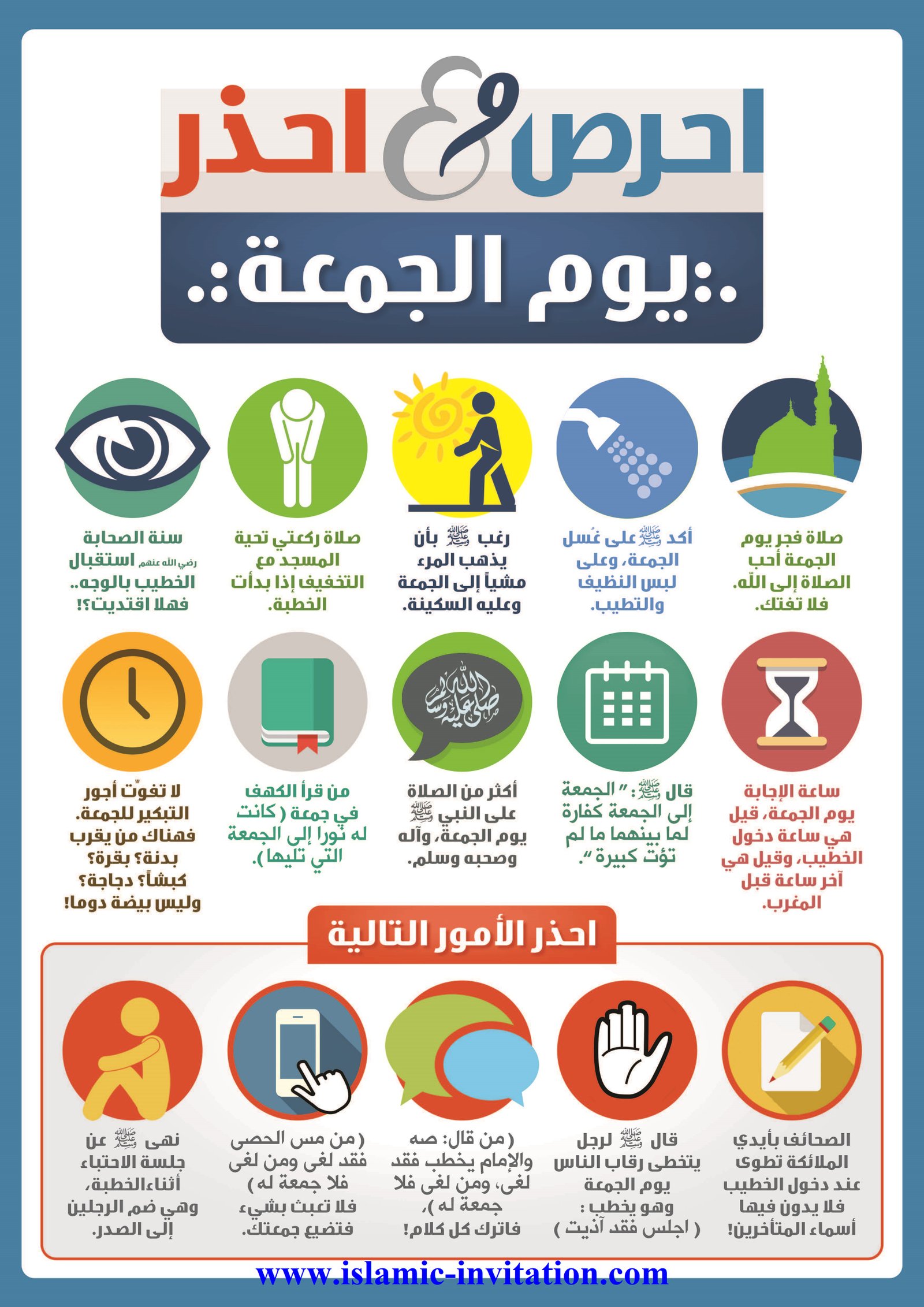 بوستر يحتوي على نصائح وتوجيهات شرعية حول يوم الجمعة