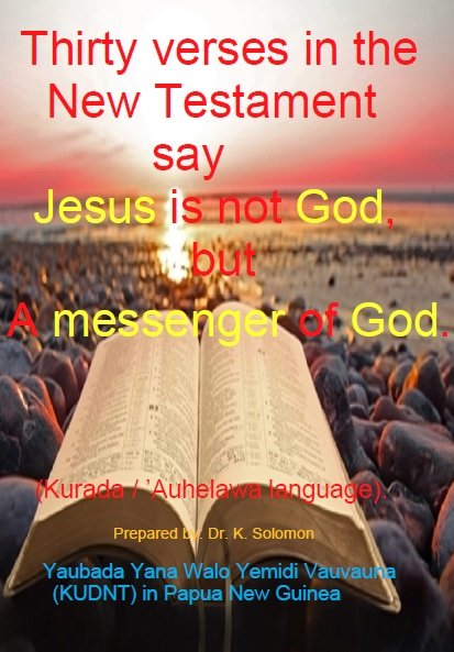 Thirty verses in the New Testament say Jesus is not God, but a messenger of God. (Kurada / ’Auhelawa language).