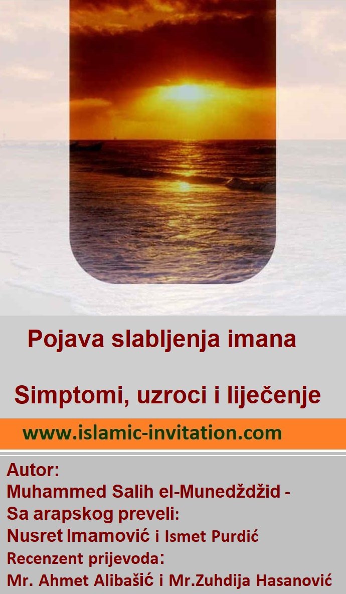 Knjiga o razlozima slabljenja imana. Odlična knjiga koja u kratkim crtama ukazuje na problem slabljenja imana i bolesti srca, njegove simptome, uzroke i načine liječenja. Pojava slabljenja imana: simptomi, uzroci i liječenje. Autor: Muhammed Salih el-Munedždžid - Sa arapskog preveli: Nusret Imamović i Ismet Purdić ; Recenzent prijevoda: Mr. Ahmet Alibašić i Mr.Zuhdija Hasanović