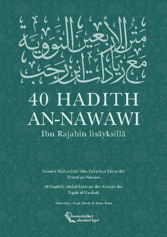 Imaami Yahya ibn Sharaf an-Nawawin hadith-kokoelma on tunnettu, hyväksytty ja arvostettu muslimioppineiden keskuudessa. Se sisältää kokonaisuudessaan 42 profeetta Muhammadin ﷺ hadithia. An-Nawawin mukaan nämä 42 hadithia ovat tärkeimmistä ja olennaisimmista islamin profeetallisista perinteistä. Aiheet sisältävät kaiken, mitä muslimin tulisi vähintään tietää uskonnostaan. Tämä käännetty kokoelma sisältää myös ibn Rajabin lisäämät kahdeksan hadithia, jotka hän koki sopivaksi lisätä tähän kategoriaan tehdessään kirjasta selityksen nimellä 'Jaami’ al-uluum wal-hikam'. Hadithien selittämiseen on hyödynnetty enimmäkseen hänen selityksiään sekä tekstissä mainittujen oppineiden kommentteja. Kirja on käännetty arabiankielestä, ja käännöksissä on pyritty säilyttämään oikea merkitys. 40 HADITH AN-NAWAWI Ibn Rajabin lisäyksillä - SUOMEKSI - Suomi (Finnish)