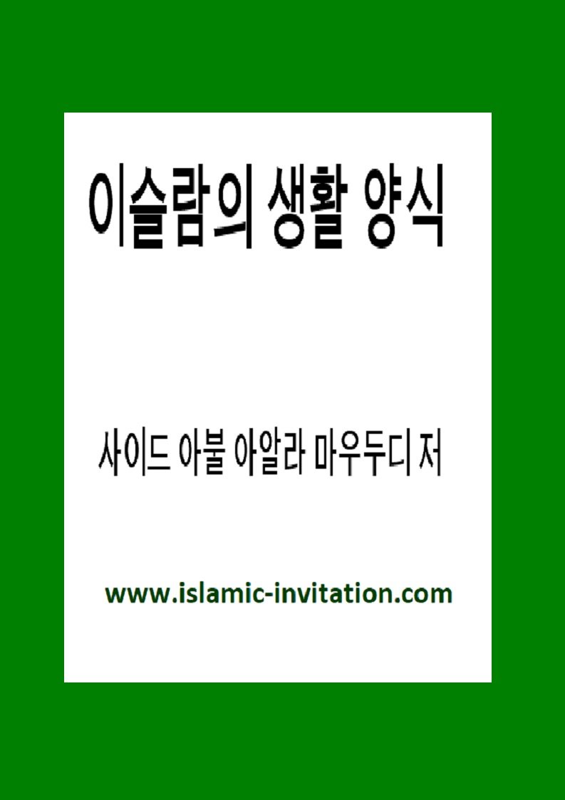 이슬람 교리가 갖는 가장 중요한 특징은 갈등, 부정 및 정신세계와 물질세계를 분리하는 주요 차이점 조차 인정하지 않는다는 것이다. 이슬람의 교리 자체를 단순히 인간의 정신과 도덕생활을 정화시키는 것만으로 한정짓지 않는다. 개인 생활 역시 사회질서와 마찬가지로 건강한 패턴을 형성하여 하나님의 왕국이 실제로 지상위에 이루어지고 평화와 만족, 인류복지가 대양(大洋)을 채우는 물처럼 이 세상을 지배하도록 하고자 한다. 이슬람의 생활양식은 이와 같이 삶에 대한 독특한 접근방식과 우주에서 차지하는 인간존재에 대한 특별한 인식에 기초하고 있다. 따라서 이슬람의 도덕,사회,정치 및 경제체제를 논하기에 앞서 이슬람의 삶의 인식을 명확히 알아 두어야 할 필요가 있다. 처음부터 이해하고 알아두어야 할 몇가지 기본 명제들이 있다. 기본 명제들은 다음과 같다. - 작성자: 사이드 아불 아알라 마우두디 저
