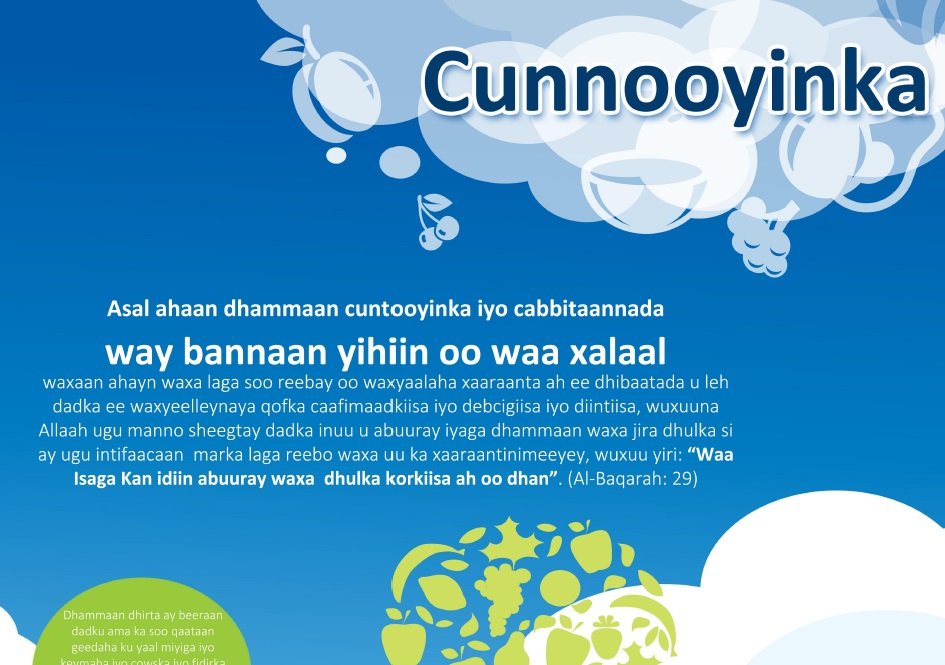 Cunnooyinka Asal ahaan dhammaan cutooyinka iyo cabbitaannada way bannaan yihiin oo waa xalaal