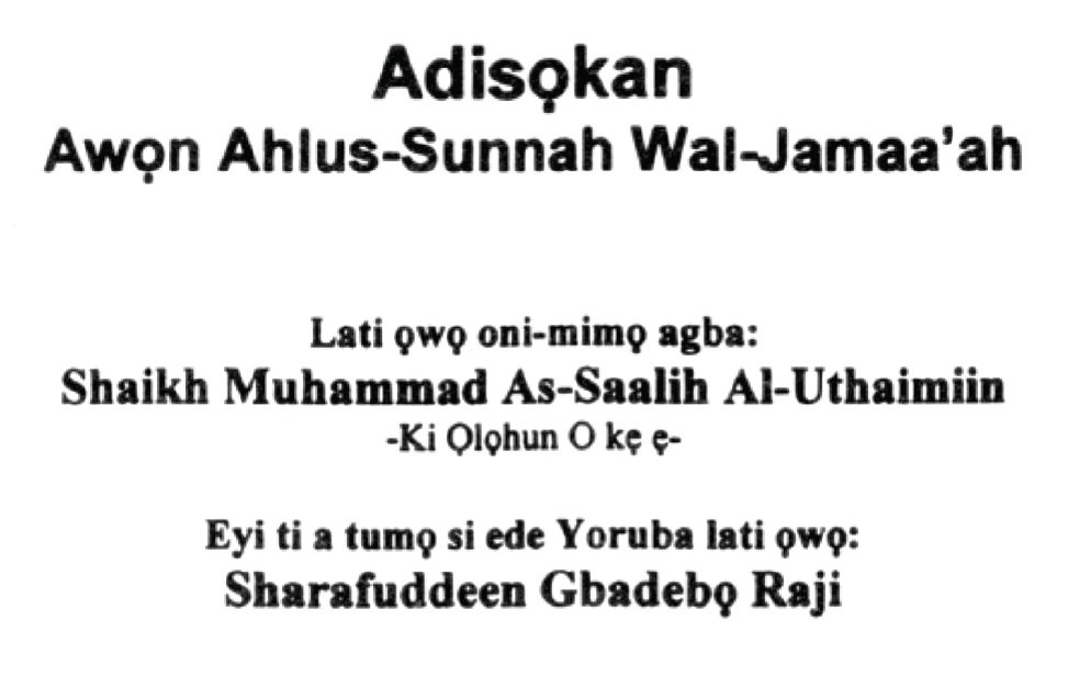 Adisọkan Awọn Ahlus-Sunnah Wal-Jamaa’ah