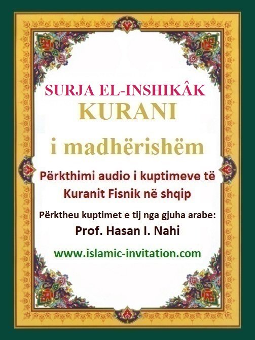 084 SURJA EL-INSHIKÂK - KURANI i madhërishëm - Përkthimi audio i kuptimeve të Kuranit Fisnik në shqip - Përktheu kuptimet e tij nga gjuha arabe: Prof. Hasan I. Nahi - SURAH AL-INSHIQAQ - THE QURAN the Glorious - Audio translation of the meanings of the Noble Quran in Albanian - Translated its meanings from the Arabic language: Prof. Hasan I. Nahi سورة الإنشقاق - القرآن الكريم - ترجمة صوتية لمعاني القرآن الكريم إلى اللغة الألبانية - ترجمة معانيه من اللغة العربية: الأستاذ الدكتور حسن إ. ناهي https://www.islamic-invitation.com/downloads/translation_quran_albanian.pdf