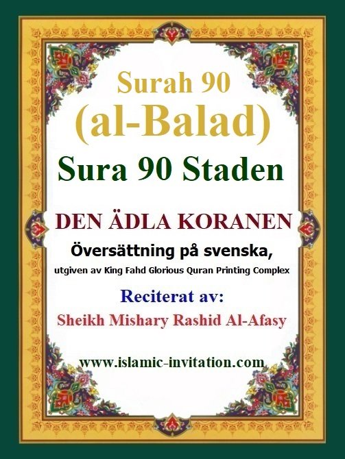 Sura 090 Staden Surah 090 (al-Balad) - DEN ÄDLA KORANEN - Översättning på svenska, utgiven av King Fahd Glorious Quran Printing Complex - Reciterat av Sheikh Mishary Rashid Al-Afasy. An audio translation of Surah al-Balad from the Noble Quran in the Swedish language - recited by Sheikh Mishary Rashid Al-Afasy ترجمة صوتية لسورة البلد من القرآن الكريم باللغة السويدية – تلاوة الشيخ مشاري راشد العفاسي